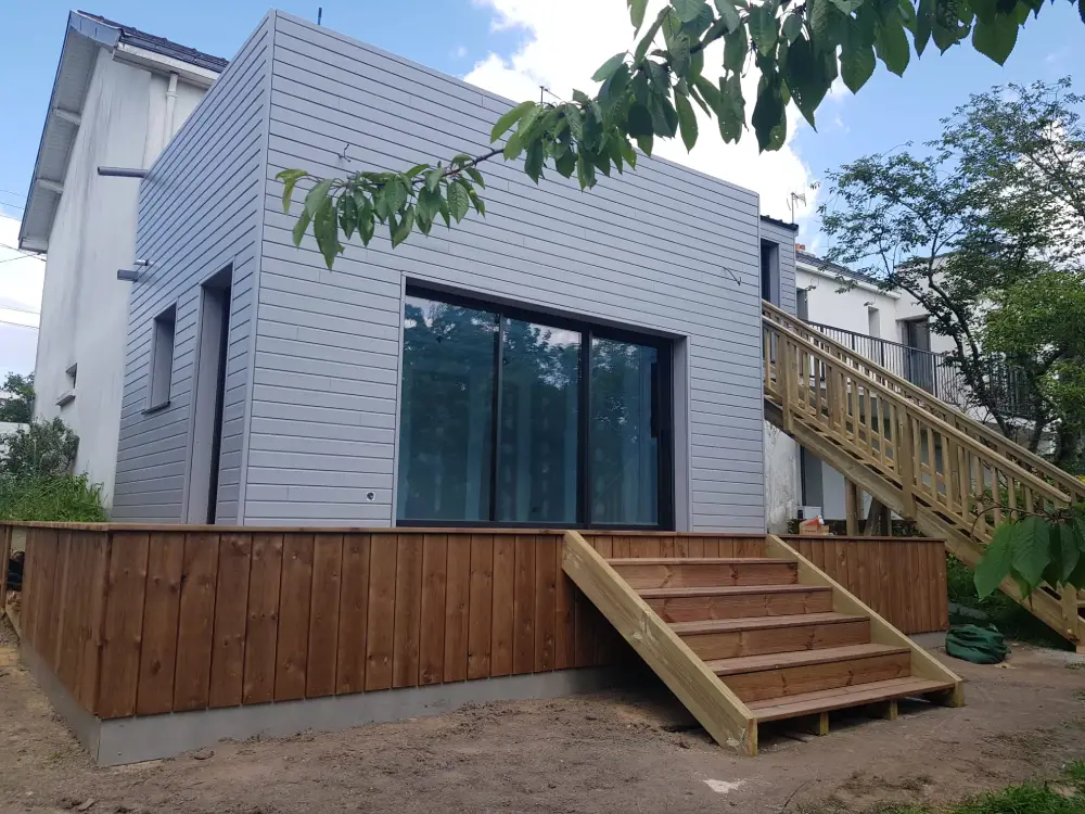 Pour cette maison nantaise, la cliente souhaitait une extension au rez de chaussée pour créer un salon, ainsi qu’une terrasse sur le toit qui serait accessible depuis le jardin et l’étage. Il fallait également rénover la petite verrière existante à l’étage sur l’emprise de l’ancien balcon et créer une pièce isolée donnant accès sur la terrasse créée.