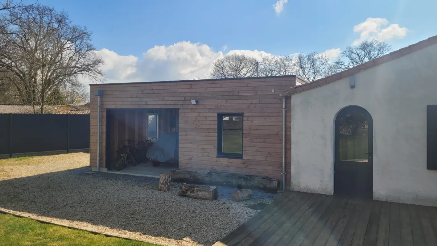 Le besoin était de créer un grand préau en lien avec la maison existante. Il a fallu démolir la dépendance en pierres qui était mal placée et inexploitable.